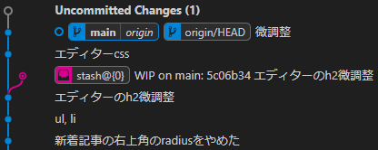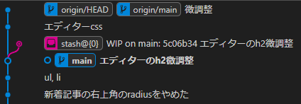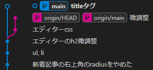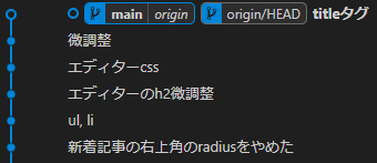 「エディターのh2微調整」というコミットまでは、オフィスと自宅にある2つのローカルPCは同じコミットだった。