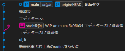 ① まず、「titleタグ」コミットを取り消して、stashして編集内容を保管する。