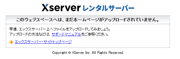 ここに入っていたのはエックスサーバーが仮りで置いていたこれ↓を表示するためのindex.html