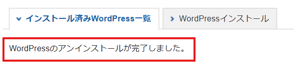 WordPressの削除もついでにやって、どうなるか確認してみました。